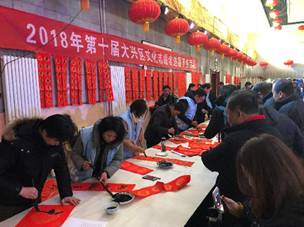 日前,大兴区2018年文化科技卫生"三下乡"启动式上"送福"活动开始,组织二十余名文化志愿者,先后在长子营镇留民营村、林校路街道办事处车站南里社区、庞各庄镇北曹各庄村举办书写春联、福字,刊物文集赠送活动,并将志愿者们写好的春联福字送到定福庄村、机关企事业单位等地。