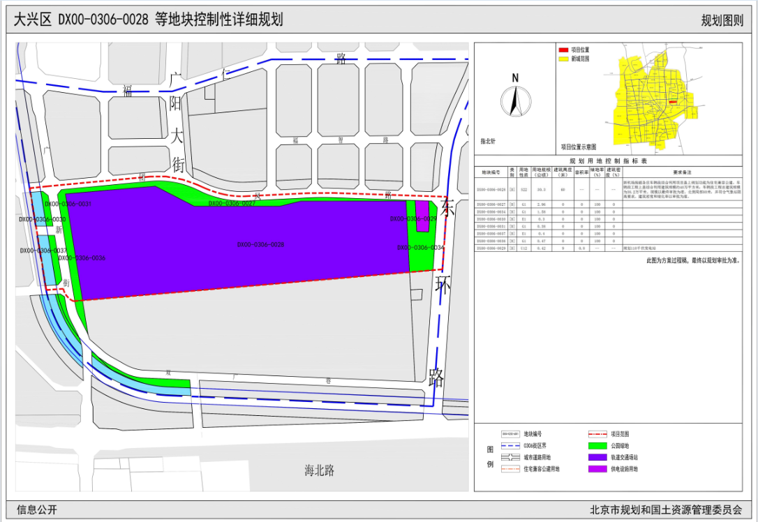 为落实市政府关于轨道交通场站与周边用地综合利用工作的指示精神,积极推进团河地区的建设工作,实现新机场线车辆段上盖综合开发,编制完成了《大兴区DX00-0306-0028等地块控制性详细规划方案》。根据《中华人民共和国城乡规划法》(中华人民共和国主席令第七十四号)的有关规定,现对规划成果进行公示,听取公众意见。公示期限30天。