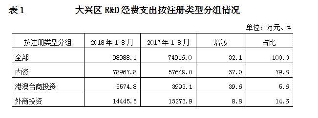 1-8月,大兴区大型企业17家,占比23.3%,R&D经费支出7.7亿元,占比77.4%,R&D投入强度为4.6%;中型企业56家,占比76.7%,R&D经费支出2.2亿元,占比22.6%,R&D投入强度为0.9%。大型企业单位数虽少,但R&D经费支出较大,对大兴区的科研投入凸显出重要作用。