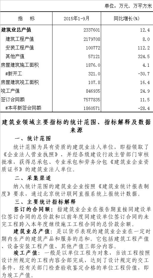 大兴区2015年1-9月建筑业总产值