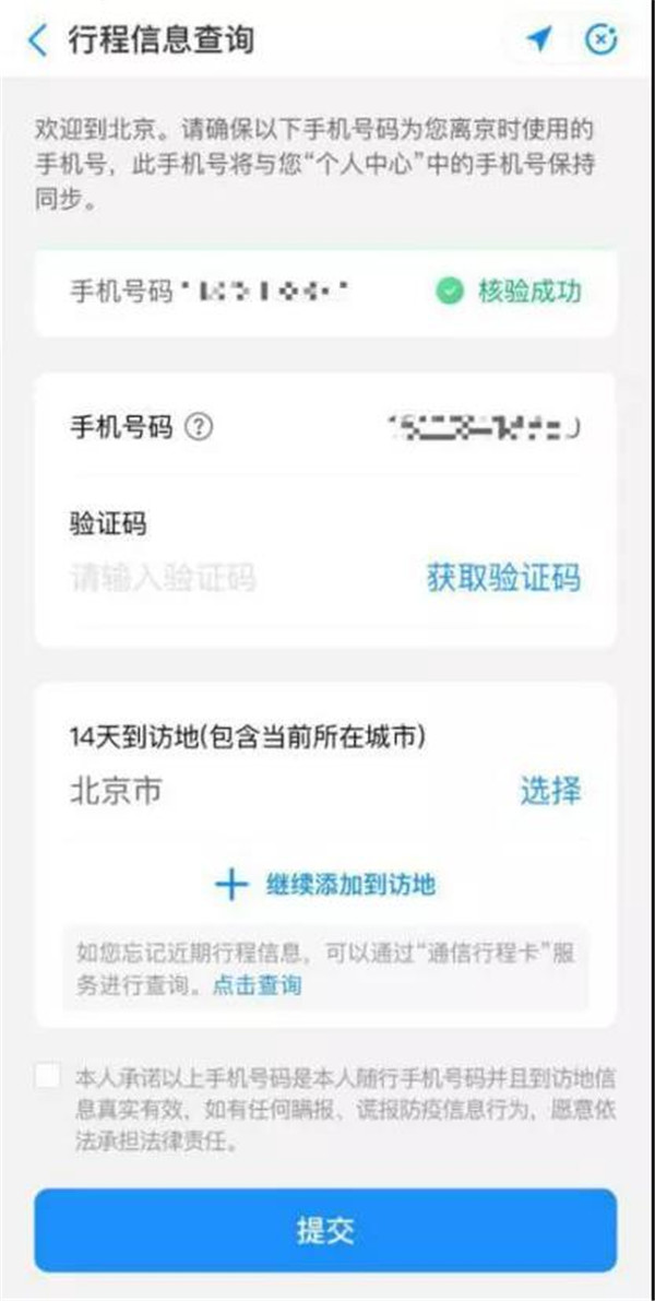 行程核验未填写北京