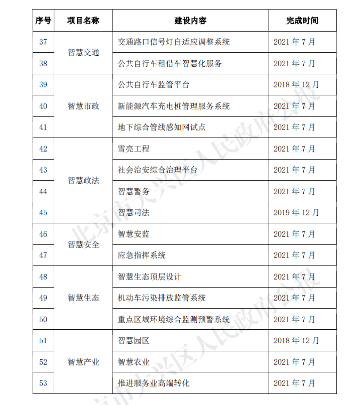 2.城市治理能力不断增强。依托大兴区公安视频专网,建成北京市首个统一规划、统一建设、分类应用的区域视频图像平台,已实现部分视频资源在区委政法委、区城市管理指挥中心、区应 急局等部门之间共享;整合网格化城市管理服务系统、社会服务管理系统、安全监管系统、村庄社区化系统、非紧急救助服务案 件办理系统、大兴区网格化综合决策支持系统等,建设“N+1”网 格化综合管理信息平台,实现由被动管理向主动服务模式转变;对已建成的安全生产监管信息平台、动态安全监管和预警预报系 统、危险化学品图像监控平台,进行优化升级;建成应急值守系统与应急政务移动信息平台,实现了对城市应急事件随时随地处 置;实施动物卫生监督重点环节实时监控与溯源追查,有效地提 升了食品安全和环境安全的防御效能。